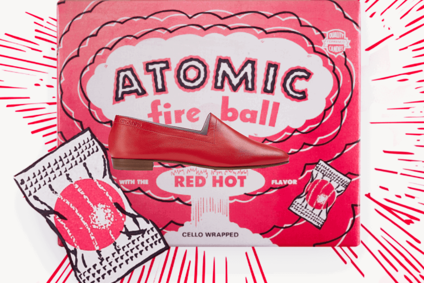 I think all that early sweet-wrapped education stuck. For our first trade show in New York, our shoes were lined up like colourful confections. And at an early pop-up on Calvert Avenue in Shoreditch, visitors could try their luck with a spin of our Wheel of Fortune for prizes including candy, or win a pair of shoes by guessing the number of shoehorns inside a big candy jar. It was a mix of chance, colour and play that still feels very us.