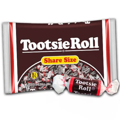 Tootsie Rolls were the opposite: neat brown cylinders with crisp white ends and strips of red framing the rounded Cooper Black type. Bold yet understated.