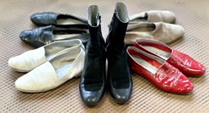 Caron is wearing our latest No10 Lurex Black flats, No10 Lurex White and No16 Classic Black boots. Her red patent flats are no longer available, but we have two lovely reds: No10 Lipstick Red and No17 Ruby.
