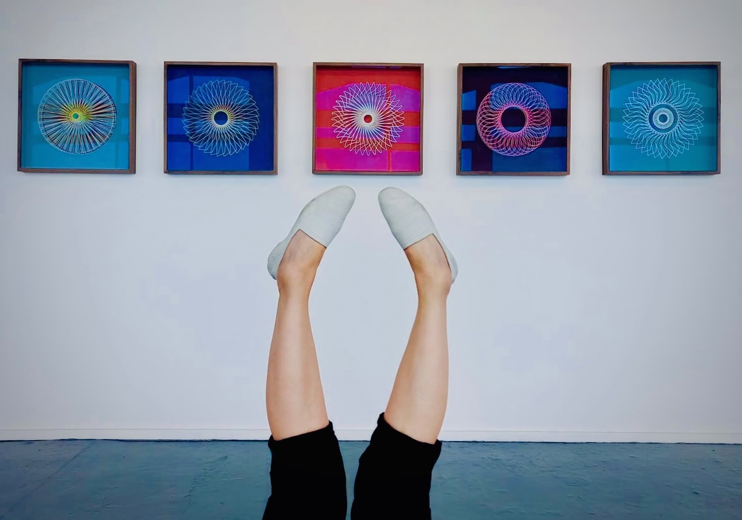 Caron’s degree show explored themes of movement, memory and space through works including the Spiro series (above, with her feet), Going Places (photographs in handmade frames) and the 40 Nights film with a Nick McCabe soundtrack. All pieces that reflect a life spent in transit, always with a camera in hand.